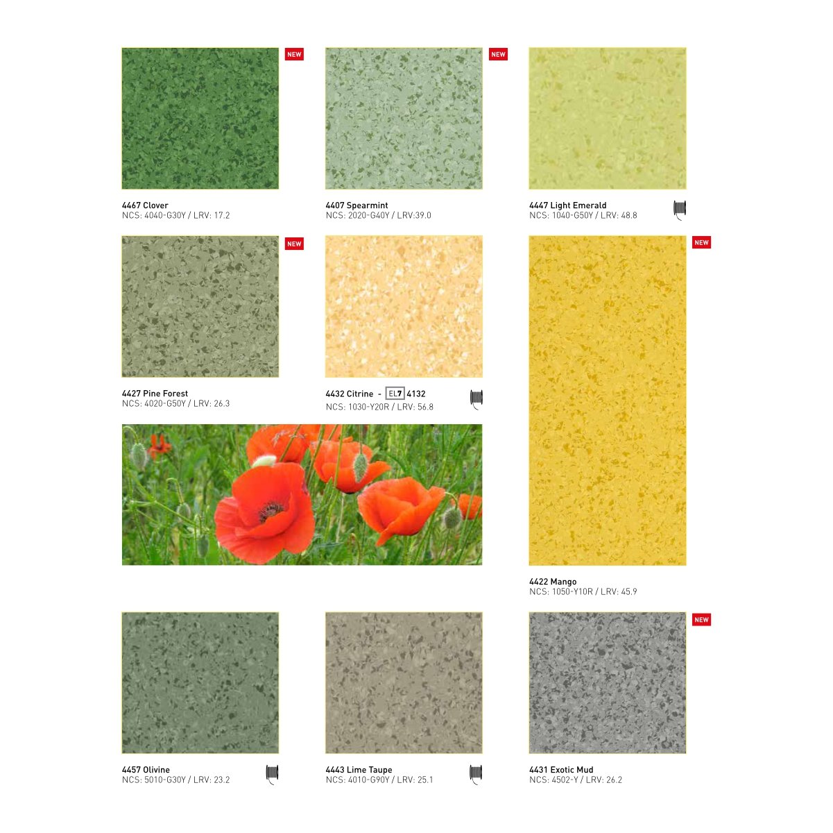 • También disponible en loseta con un pedido mínimo de 500 metros cuadrados por color