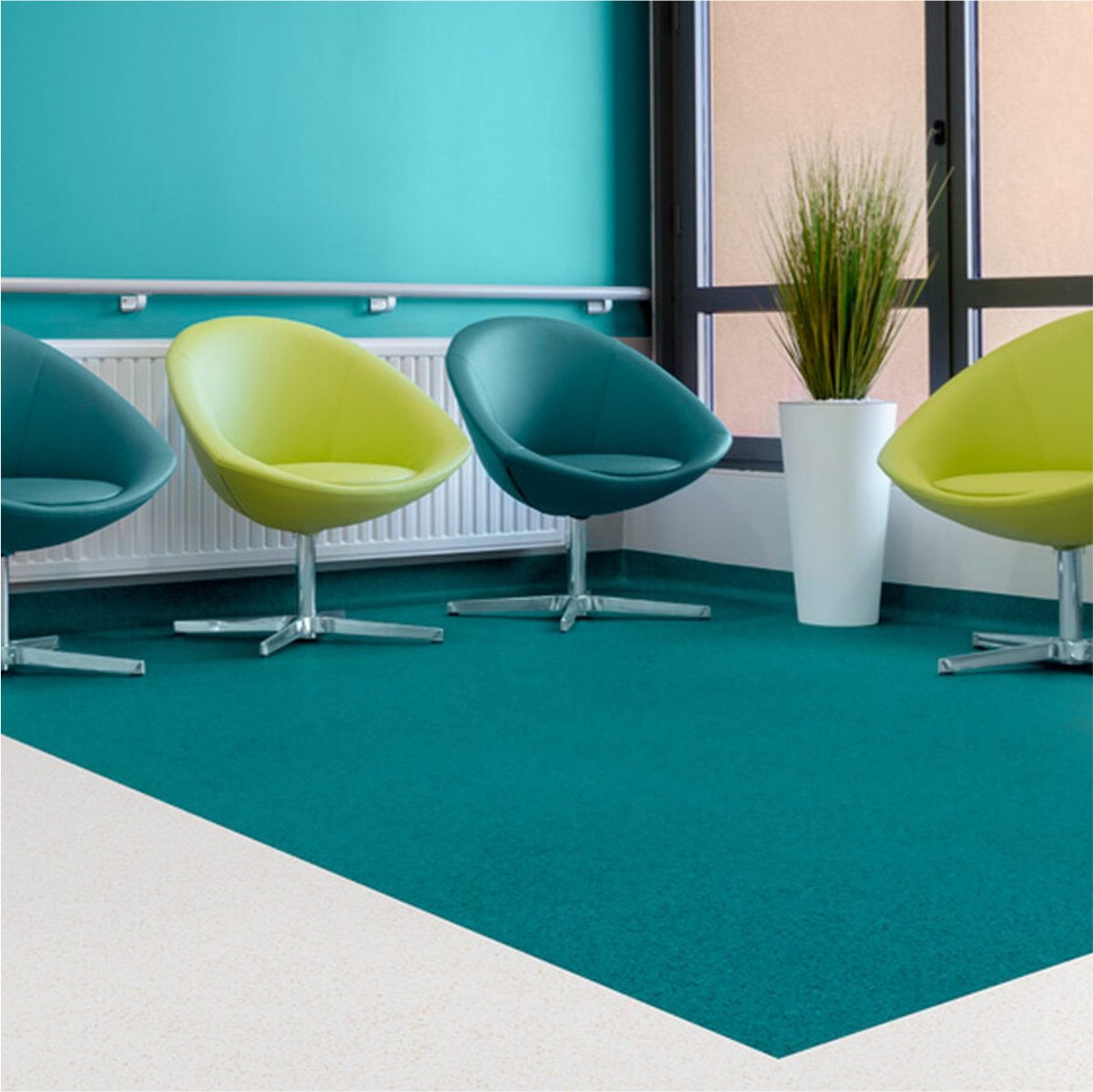 Pavimento homogéneo resistente al alto tránsito, disponible en rollo