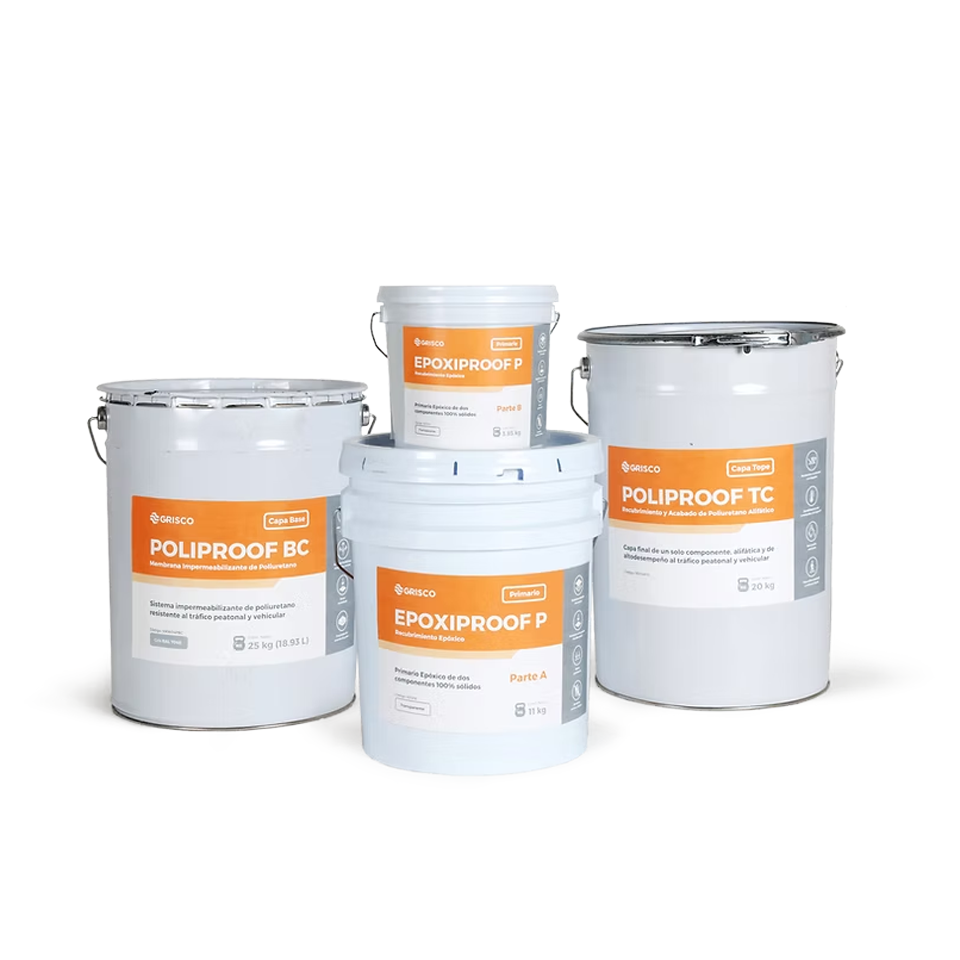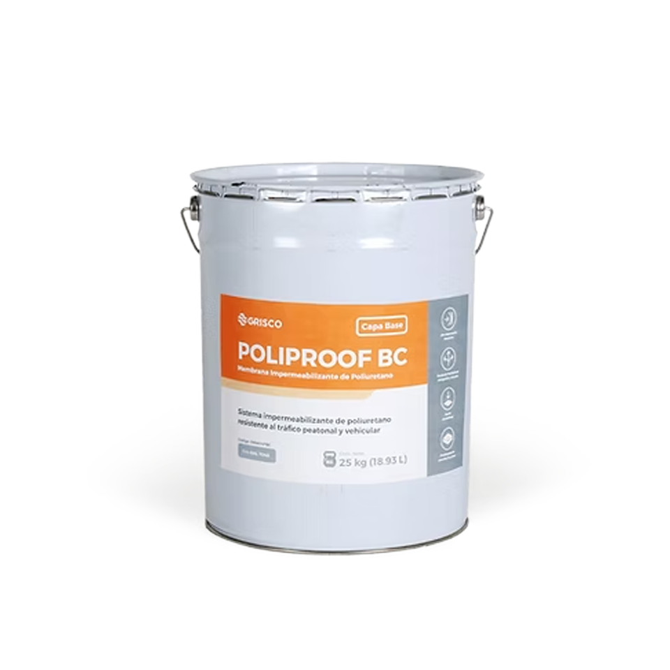 Capa base de membrana impermeabilizante de poliuretano monocomponente curado por humedad ambiental sin olores nocivos o tóxicos. Al polimerizar forma una membrana continua impermeable de bajo amarillamiento con excelente flexibilidad.